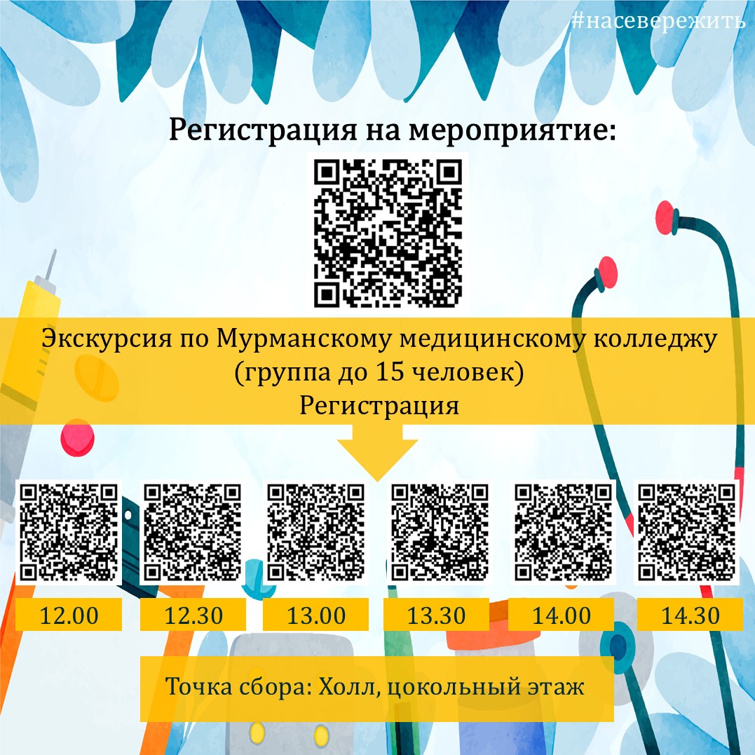 Регистрации на экскурсии для школьников, планирующих поступать в Мурманский медицинский колледж (места ограничены на каждое время – до 15 человек):
