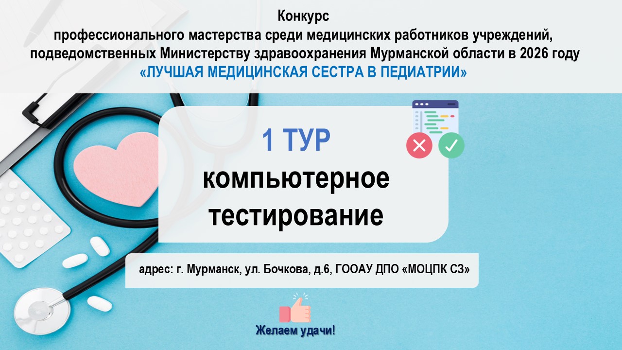 26 февраля 2026 в нашем Центре пройдет I тур конкурса профессионального мастерства среди медицинских работников медицинских учреждений, подведомственных Министерству здравоохранения Мурманской области, в номинации «Лучшая медицинская сестра в педиатрии».